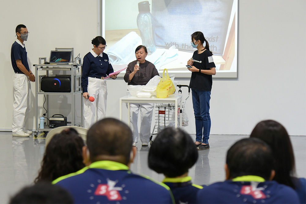 Through a skit, Tzu Chi volunteers try to convey the importance of individuals reducing their carbon footprints and share the ‘5Rs’ concept, namely Refuse, Reduce, Reuse, Recycle and Repair.