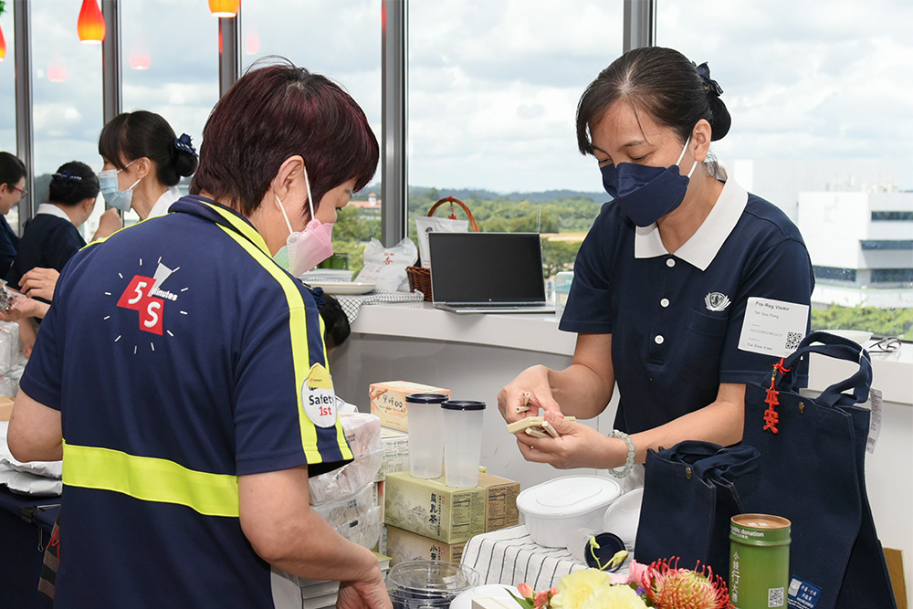 Charitable giving and adopting environmentally sustainable habits were themes of the CSR activity. Tzu Chi volunteers passionately conveyed the ideals of “small money can do great charity” and “purity at source” through skits, posters, videos and experience sharing. Additionally, the volunteers set up booths relating to Jing Si humanistic culture, Healthier Me 21-Day Challenge, environmental protection, and Bamboo Bank Era, for interested employees to enquire further.