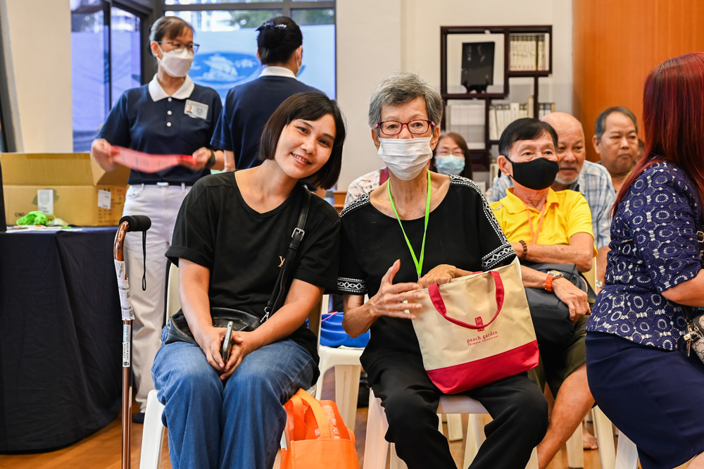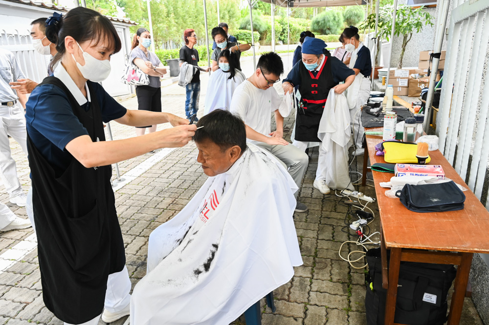Upon arriving at the Jing Si Hall, volunteers first gave Koh Gek Luan and her helper a haircut. "Look, with a haircut, I feel so fresh and nice!" Koh Gek Luan said happily. "I'm delighted to be here and meet so many friends. This is the first time I see so many people together since I started dialysis. It's been a joyous day, and I'm delighted!"