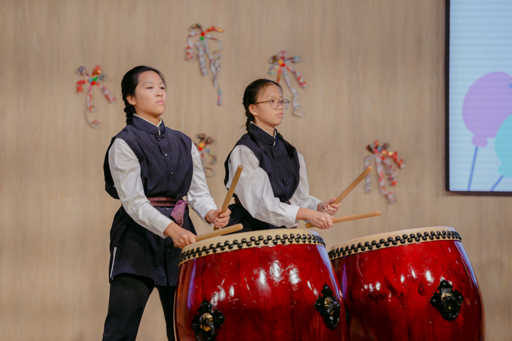 One of the highlights of the celebration was the drum performances by an alumni drum troupe, delivering a dynamic opening and closing performance as a tribute to their alma mater. The 12-member drum troupe aged 9 to 15 began weekly rehearsals three months prior to prepare two specially arranged pieces: Return and Original Aspiration.