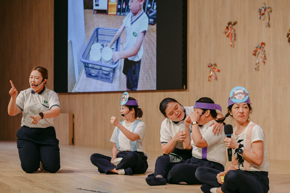 Preschool teachers vividly acting as lively and active preschool children, bringing laughter to the audience. (Photo by Chai Yu Leong)