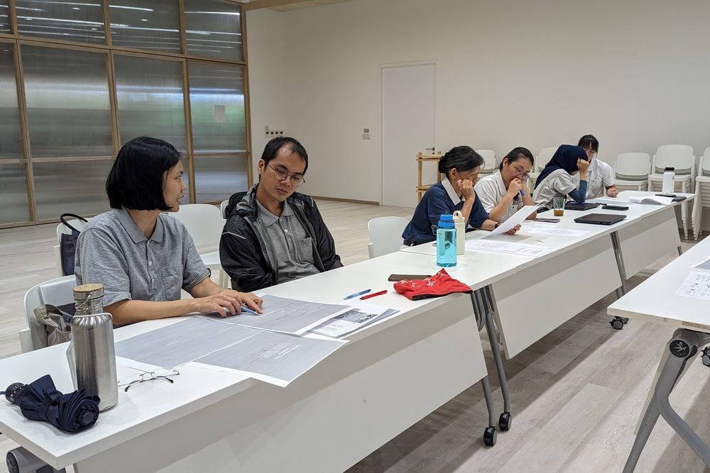 Tzu Chi assistant content lead, Tey Inn Ping (third from left) is seen here in discussion with TMMW team before putting up the content for the gallery. (Photo by Tang Zou Cie)