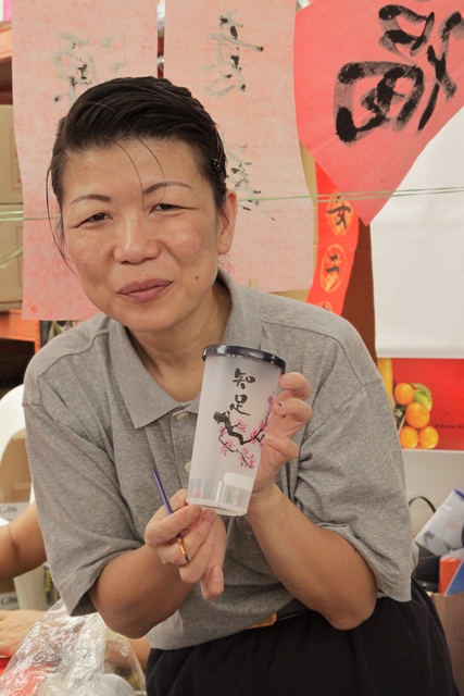 In fact, the cost of every item needed and all painting materials were covered by Soh Chin and the instructors. They then donated in full, the funds raised from the sale of items. Many who attended the bazaar were deeply moved by their pure motivation and full of praise towards their efforts. By the end of the first day of the bazaar (26 January), approximately three quarters of the items were sold out. In order to cope with the demand, Soh Chin and her instructors took up their brushes again and began lending their designs on the tumblers.