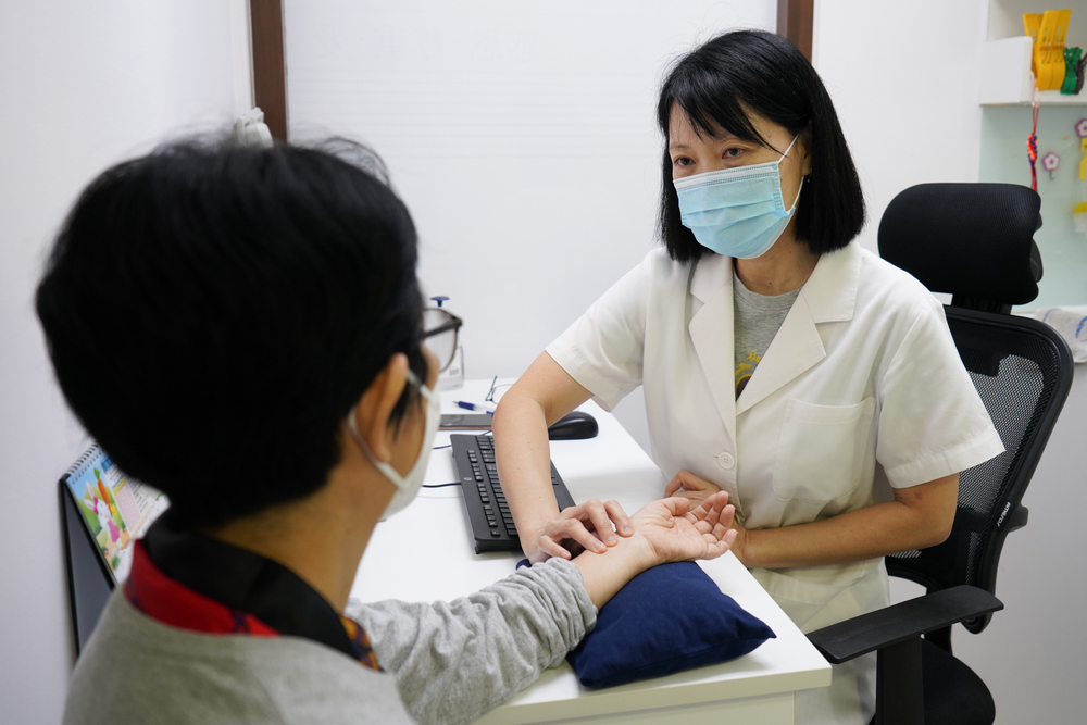 One of the TCM practitioners reading the pulse of a patient during a consultation session at the clinic. (Photo by Chan May Ching)