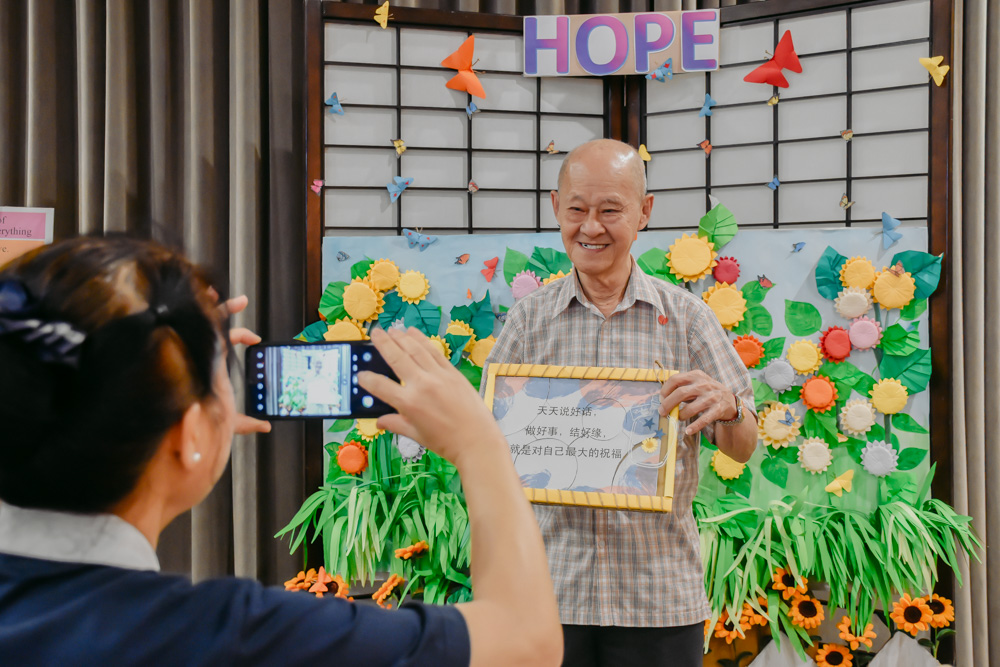 A wall of colourful flowers and lighting was set-up by south zone charity volunteers as a photo booth corner for the renal care recipients to capture this joyful moment. “The individual light signifies the hopes of everyone, and that they can blossom and stay positive like the flowers,” explained Sister Tiw Lee Peng. She also revealed that renal care recipients also get to keep the Polaroid photos as a memento and wished they could always remember this happy moment.