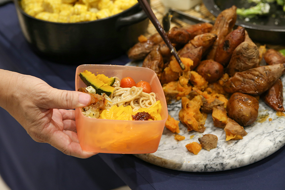 The event advocates the concept of "Zero Waste", encouraging everyone to bring containers and utensils for food tasting. (Photo by Fong Kwai Kin)