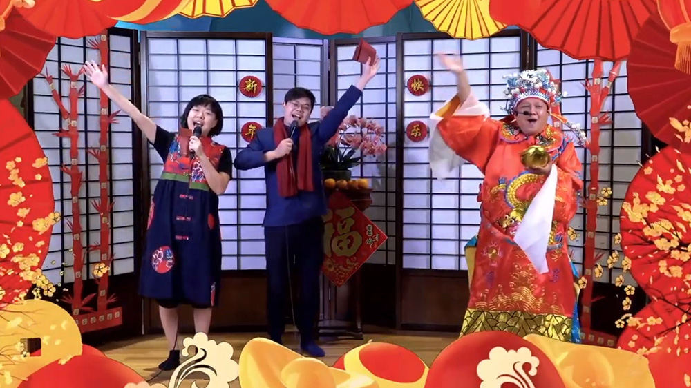 "The Lunar New Year is about to arrive!" Two emcees appeared on the TV or computer screen, accompanied by the joyous Lunar New Year song. With a "God of Wealth" and the good-humoured bantering between the emcees, a festive atmosphere was instantly ignited across the virtual party.