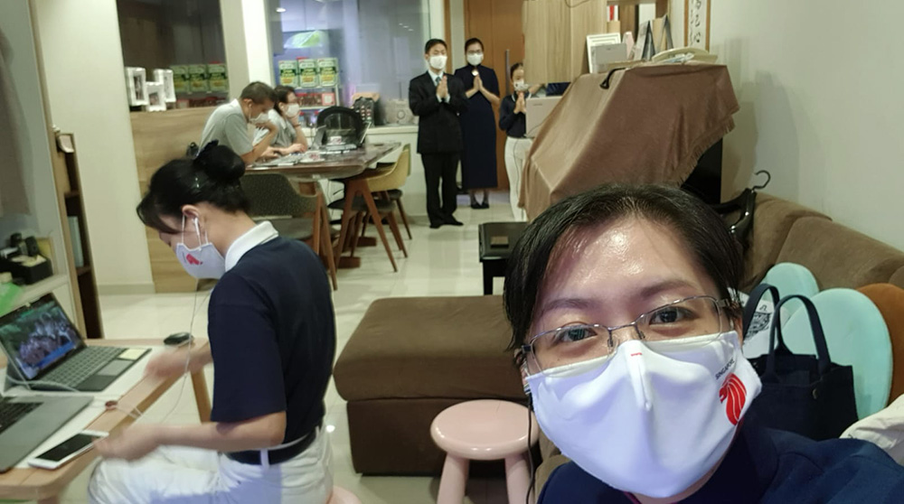 虽然疫情多变,但阻挡不了大家想要浴佛的虔诚。9日清晨六点,东区志工穿戴整齐,纷纷上线作准备,由音控团队给每一个视窗做位置的调整,嘱咐大家站在同样位置,以虔诚心全程参与。