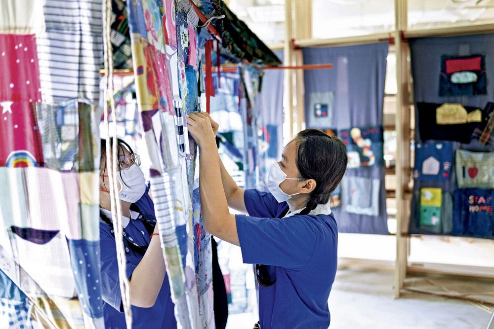 除了“缝补家的思念”外,慈济人文青年中心去年也邀请五百五十名客工及民众捐出布艺作品,由艺术家王文清将之与民众的作品缝合成象征“家”的艺术创作,在疫情缓和时,于慈济人文青年中心展出,邀请小区民众和客工来观赏、交流,当时也受到社会大众极大的关注。