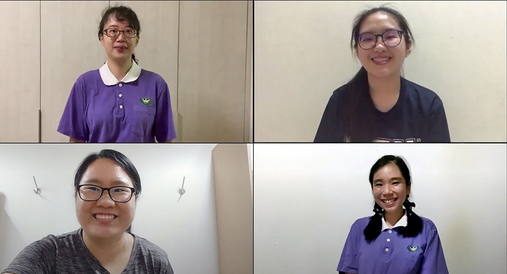 课辅计划2.0结束时,四名小老师高安晴、蔡慂洧、黎靖雯和潘苡吟一起录制视频,送给孩子。(画面截屏提供 / 张玉佳)
