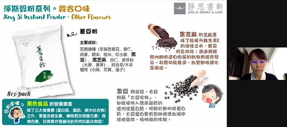接着,志工沈秀玲(上图)为大家介绍净斯产品,让参与者可以轻松选择高营养、健康、易做的早餐食品。大燕麦、燕麦薏仁粉、二十二味五谷粉、黑糙米风味的五谷粉、红藜糙米粉、山药杏仁粉、薏豆粉、麻芛薏仁粉、净斯力能调养素、莓果干,以及净斯三果等,可以提供各种维生素、矿物质、花青素、抗氧化合物、微量元素,适合各年龄层,提供人体一日所需。