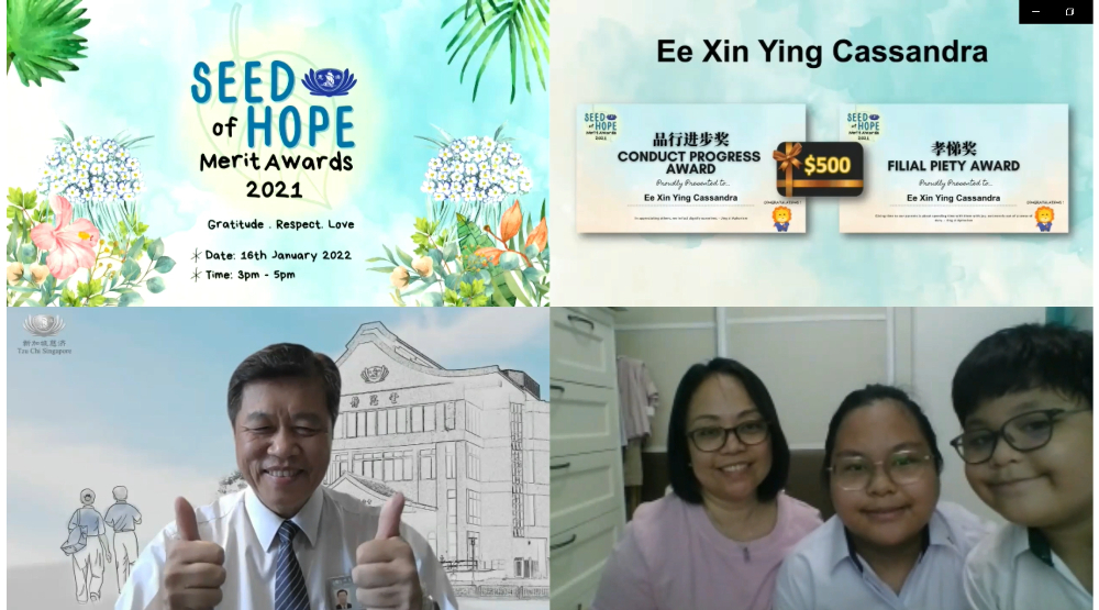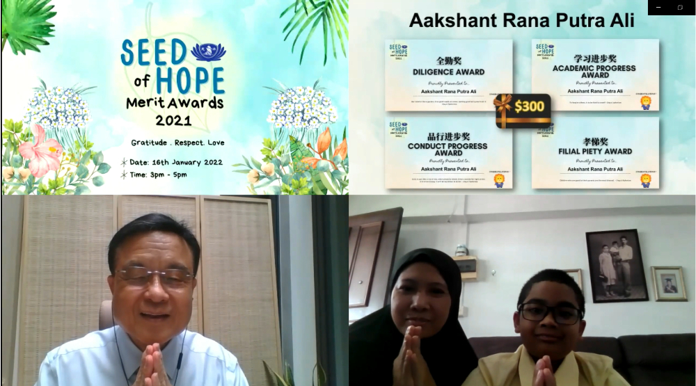 疫情未艾,拉开了人与人之间的距离,但慈济志工对新芽学子的关怀,透过科技零距离。2022年1月16日,慈济基金会(新加坡)举办2021年度新芽励学金颁发典礼,因疫情改由线上方式进行,共有49名受惠同学与家长们参与其盛。