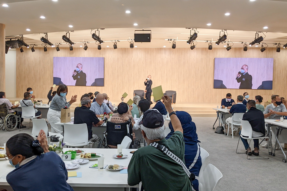 从脸上雀跃的表情看出,许多肾友带着期待的心情出席茶会,坐轮椅和丈夫同来的肾友冼美玲就是其中一位。她口罩遮面却难掩笑意说道:“今天能够出来,当然很开心!除了出来洗肾,我先生很少带我出来,他的脚也不大方便。”