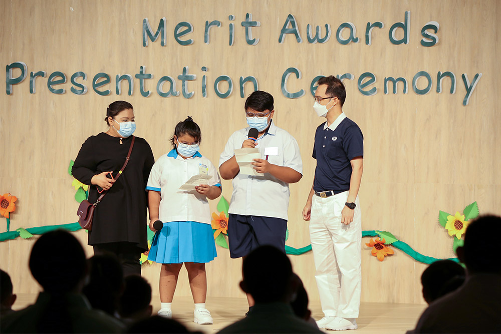 阿奇(Akif) 和提亚拉(Tiara)兄妹在妈妈和志工杜进强的陪伴下,站上舞台分享心得。这次阿奇获得品德优良奖,提亚拉则获得学习进步奖和孝悌奖,同时兄妹二人也参与“Mentoring With Love——用爱连线”线上课辅计划。