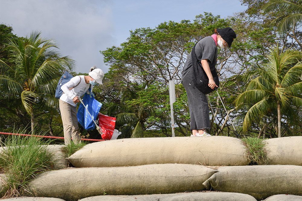众人努力睁大眼睛找寻垃圾,连防护堤岸的土工袋(Geobag)之间的缝隙都不放过,确保凡是经过的地方,垃圾也随之消失。