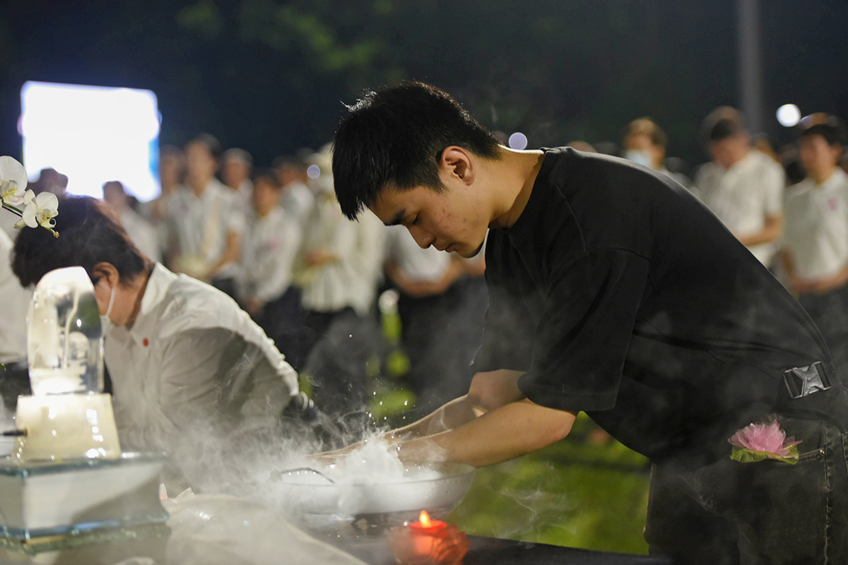 “大家动作一致浴佛的场面,很让我震撼,我要忍着不流下眼泪,怕打扰现场庄严。”25岁的青年志工黎政辉眼眶微红地说道。