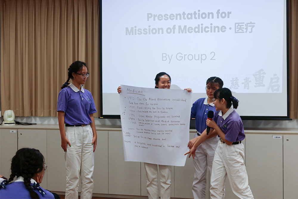 资深学姐吴萱仪和郑允然在分享时说,时间稍纵即逝,世界需要源源不绝的善力量,她们期许慈青把握时间,成为守护善的社会和美好世界的力量,承担掘井人的责任。