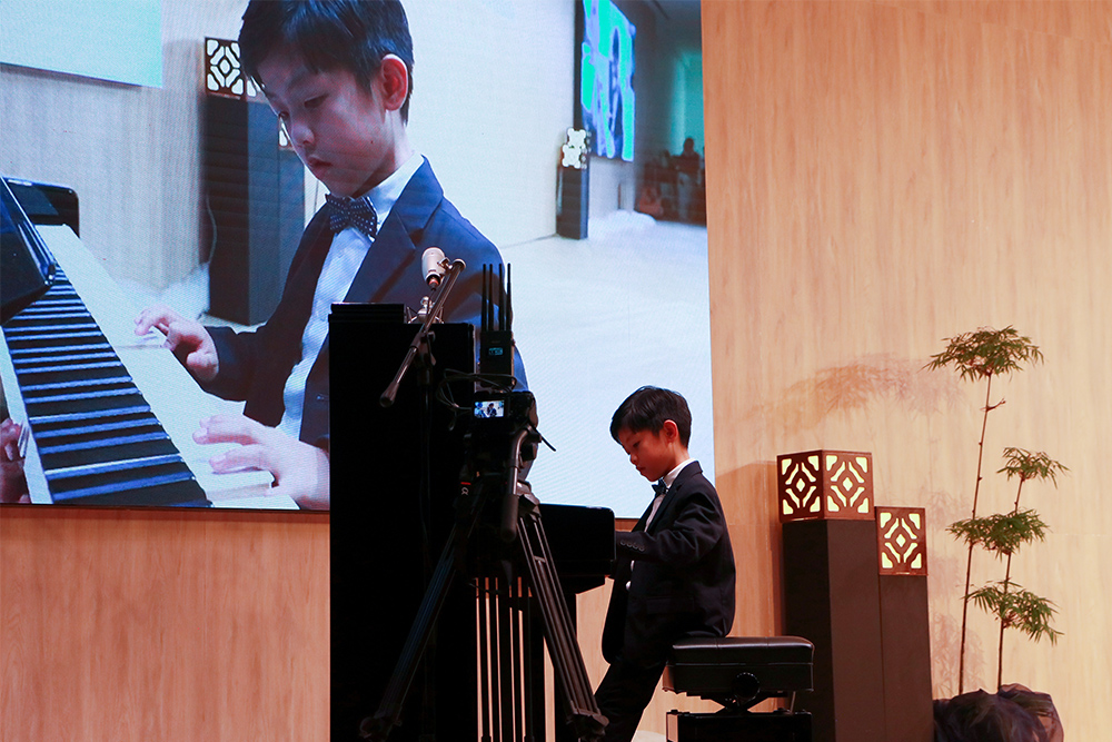 值得一提的是,洪振群还带着他七岁的小孙子洪宇哲一同到现场,小宇哲为来宾演奏了两首钢琴乐曲《送别》和“River flows in you”,让小朋友也一起来行善。