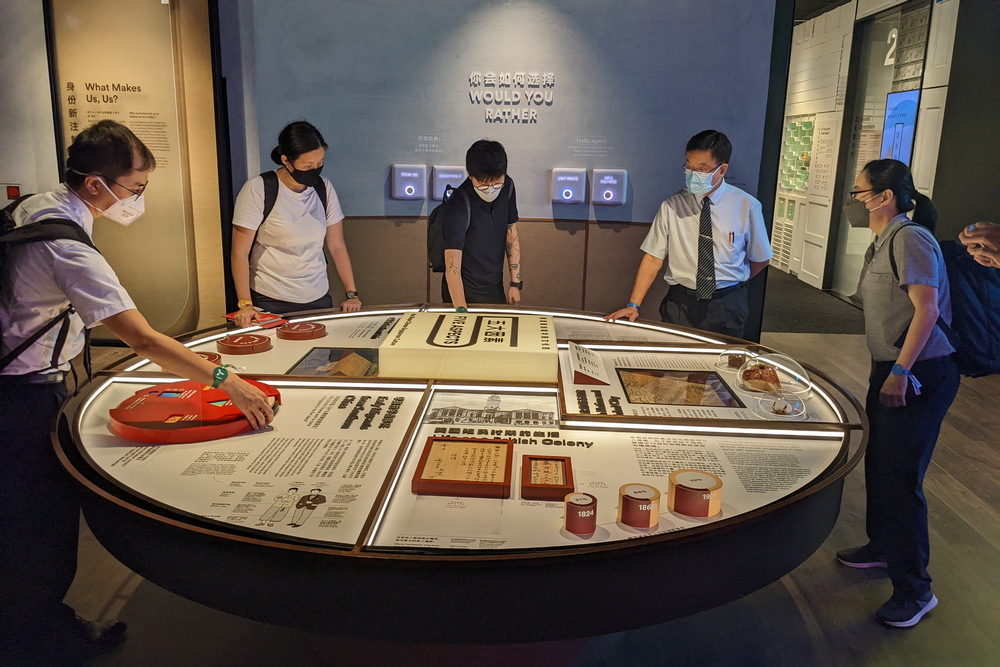 在策展研究工作初期,慈济基金会(新加坡)执行长刘瑞士(右二)与慈济职工参访了本地各个展馆。(摄/ 陈柔洁)