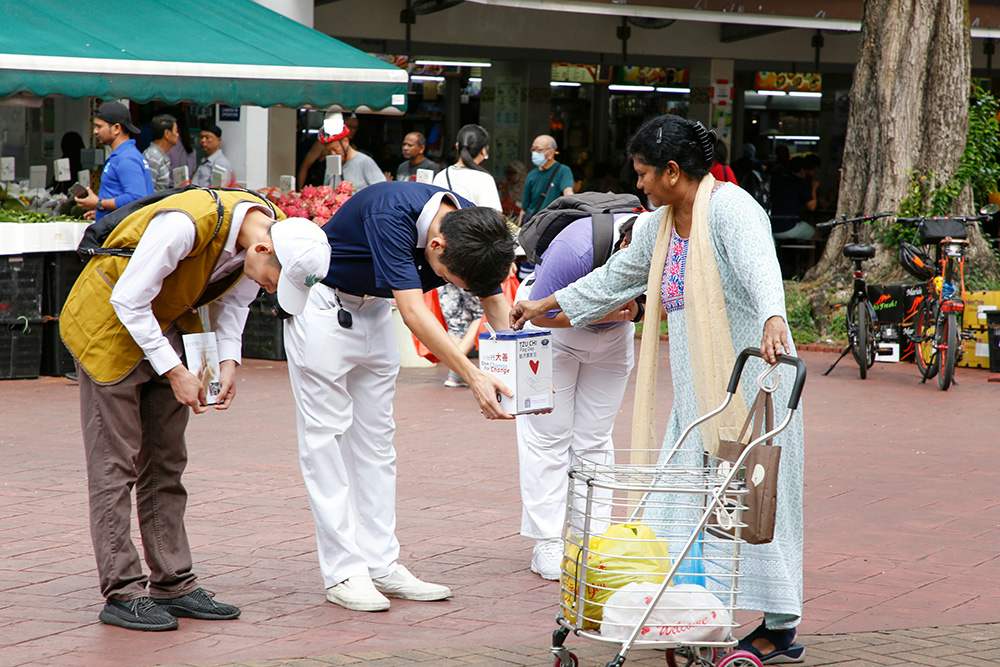 2023923日的早上7时至下午5时,近七百名慈济志工在全岛数十个据点,为慈济基金会(新加坡)善款劝募。