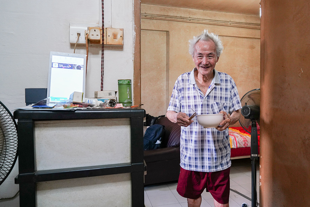每天,社区机构都会精心送上午餐和晚餐,杜阿公只需为自己和太太准备简单的早餐就足够了。(摄/ 曾美珍)