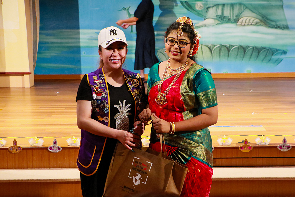 惜缘狮子会成员把礼包献给表演者。(摄/ 张彧瑞)