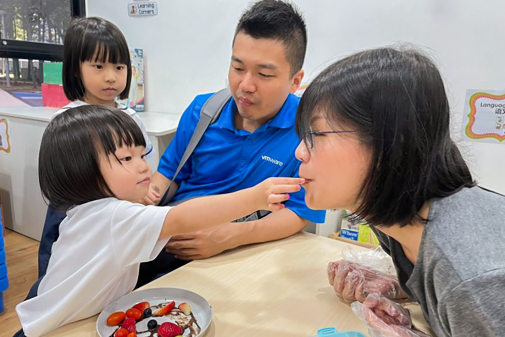 2024年5月17日,三所位于义顺、大巴窑和盛港社区的幼教中心,共同举办简单而不失隆重的孝亲活动,让孩子为父母奉茶、奉食和浴足。小朋友趁此学习向父母表达感恩,家长也能见证自己宝贝的成长,促进亲子互动。