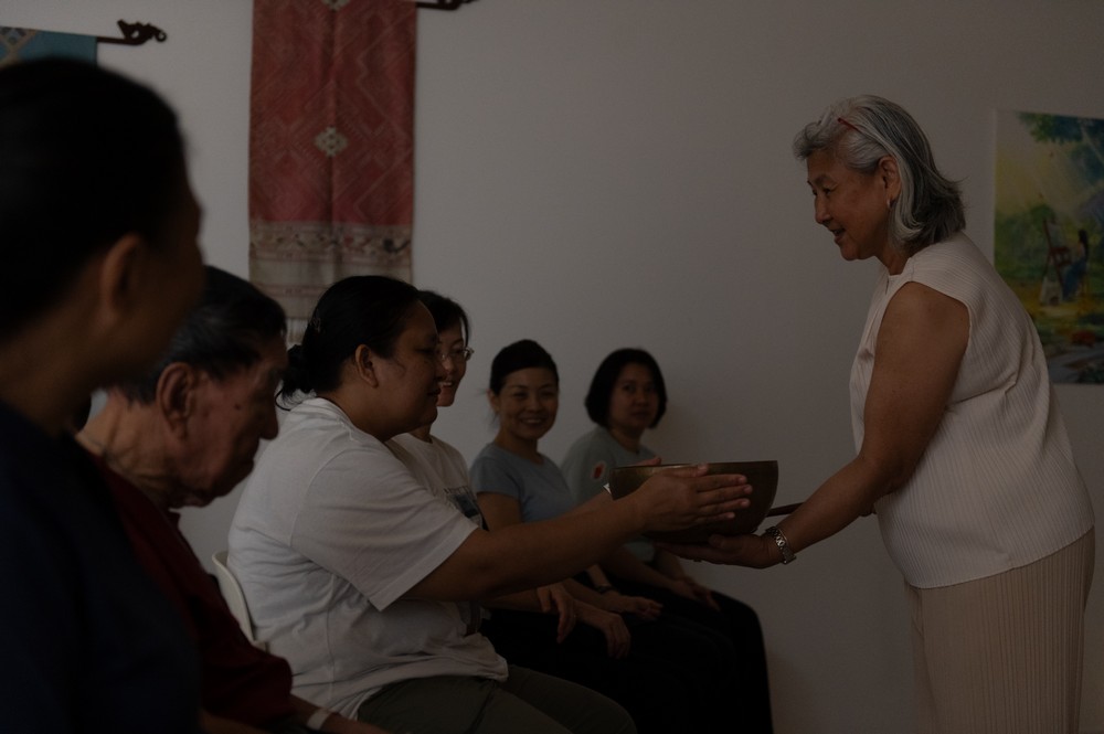 这次她亲身体验声音疗愈(sound healing)后,表示与平时听预录声音疗愈相比,现场振动频率带来截然不同的感受。“我觉得心情变得更平和,头部有种麻麻的感觉,好像在被轻柔按摩,很舒服。”