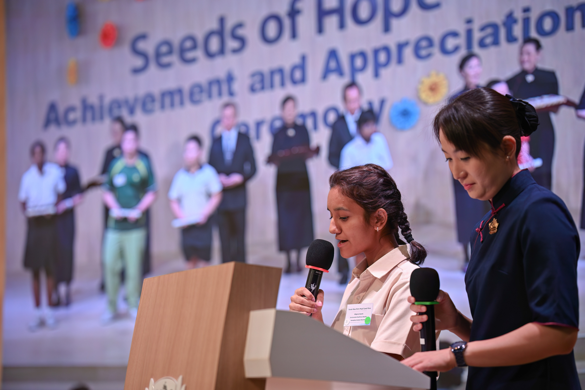 “互道感恩。”典礼司仪之一的法拉(Farah),用标准的中文念出这四个中文字令人动容的是,法拉也是新芽励学金的受惠者。