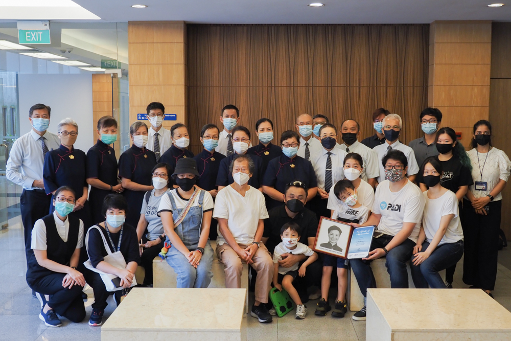 王碧莲大女儿姚雨萱(前排左四)说,三姐弟都认同大体捐献理念,三人都追随母亲脚步,签署了《遗体捐献志愿书》。